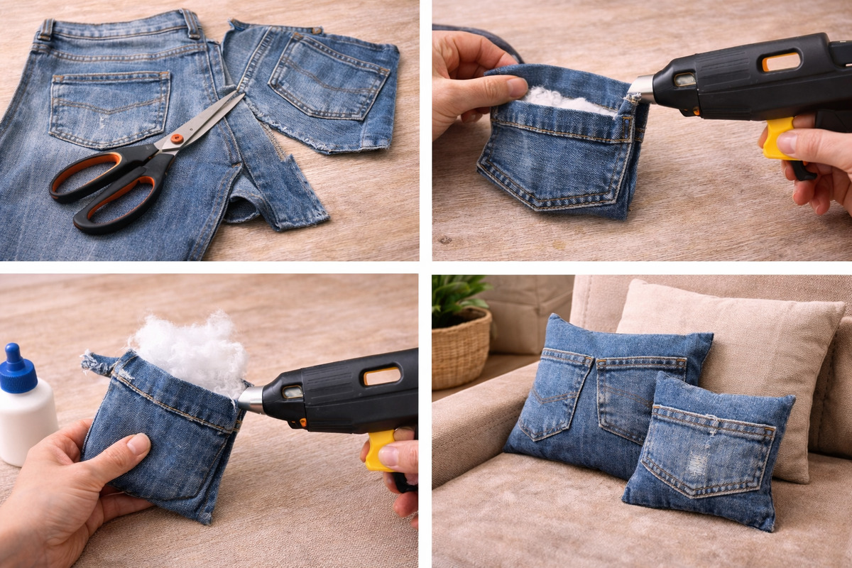 Способ пятый: ленивая подушка из джинсовых карманов