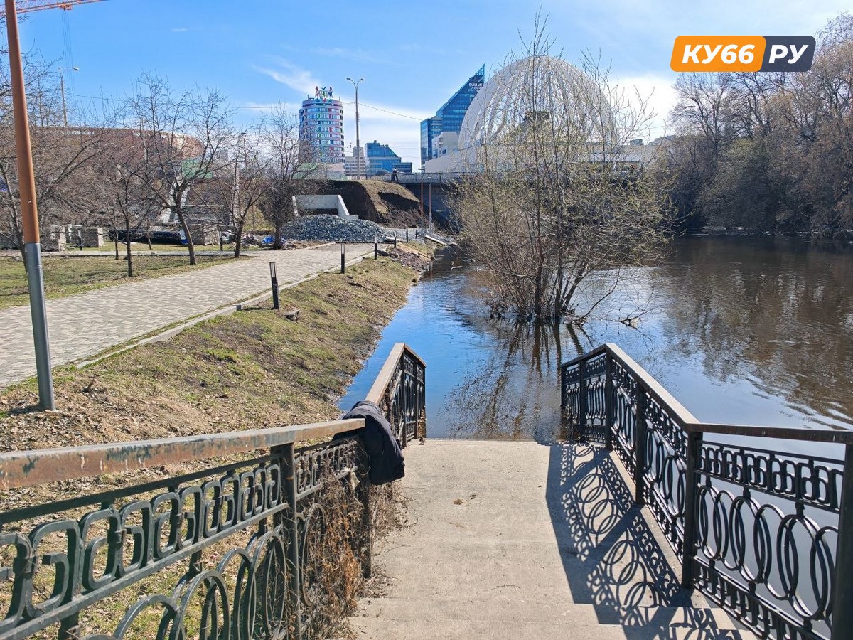 В Екатеринбурге зафиксирован подъём уровня воды в реке Исеть после сброса паводковых вод с плотины Городского пруда. В результате подтоплена первая линия набережной в центральной части города.